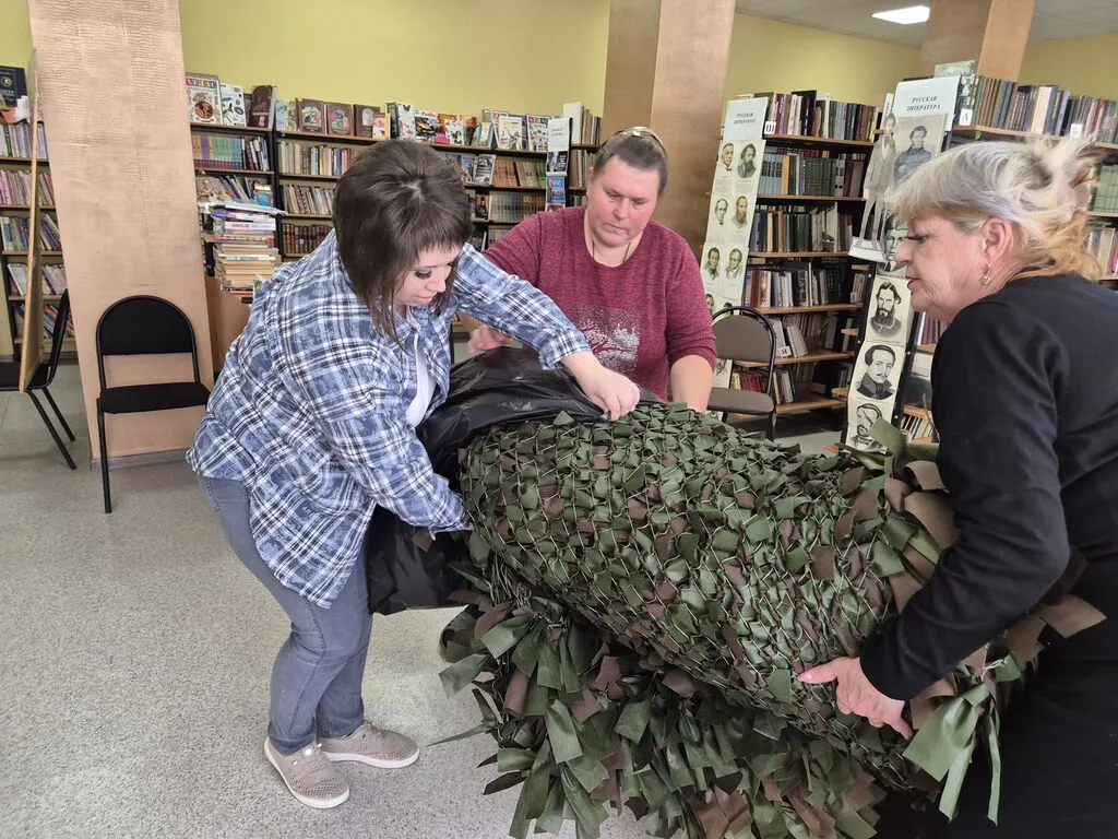 По всей стране тысячи людей активно участвуют в помощи фронту. Они собирают посылки с необходимыми вещами, вяжут носки и плетут маскировочные сети. Эти сети так же важны для бойцов, как оружие или бронежилет. В Сагуновской сельской библиотеке продолжается работа по изготовлению маскировочных сетей для земляков, участвующих в СВО.