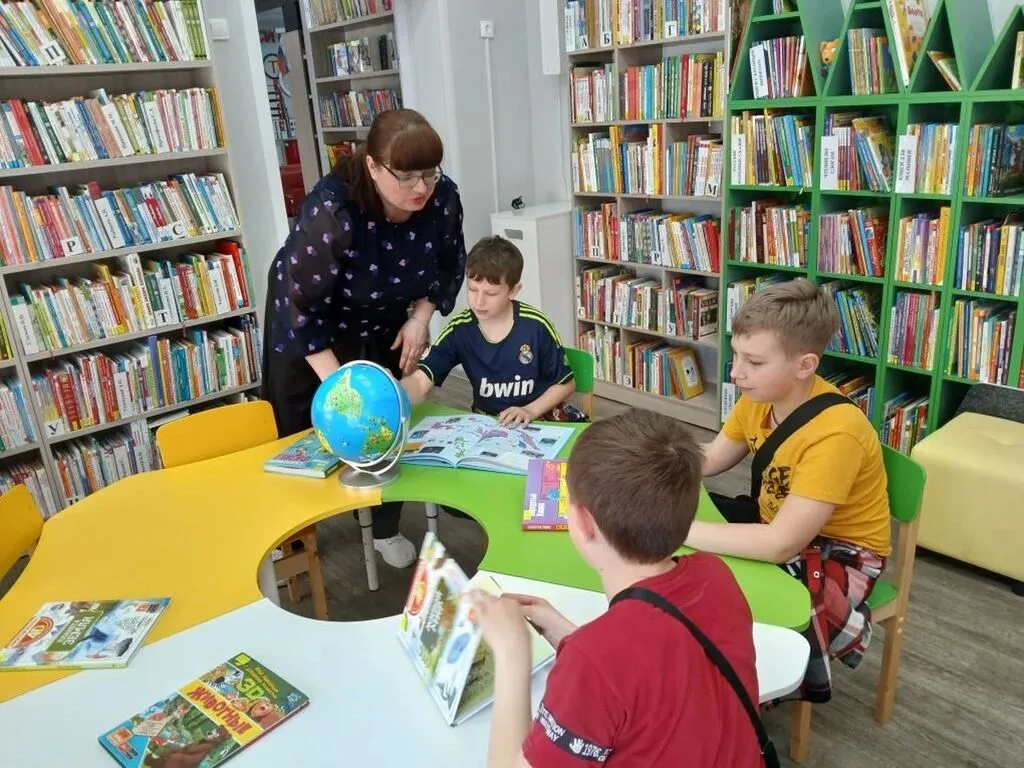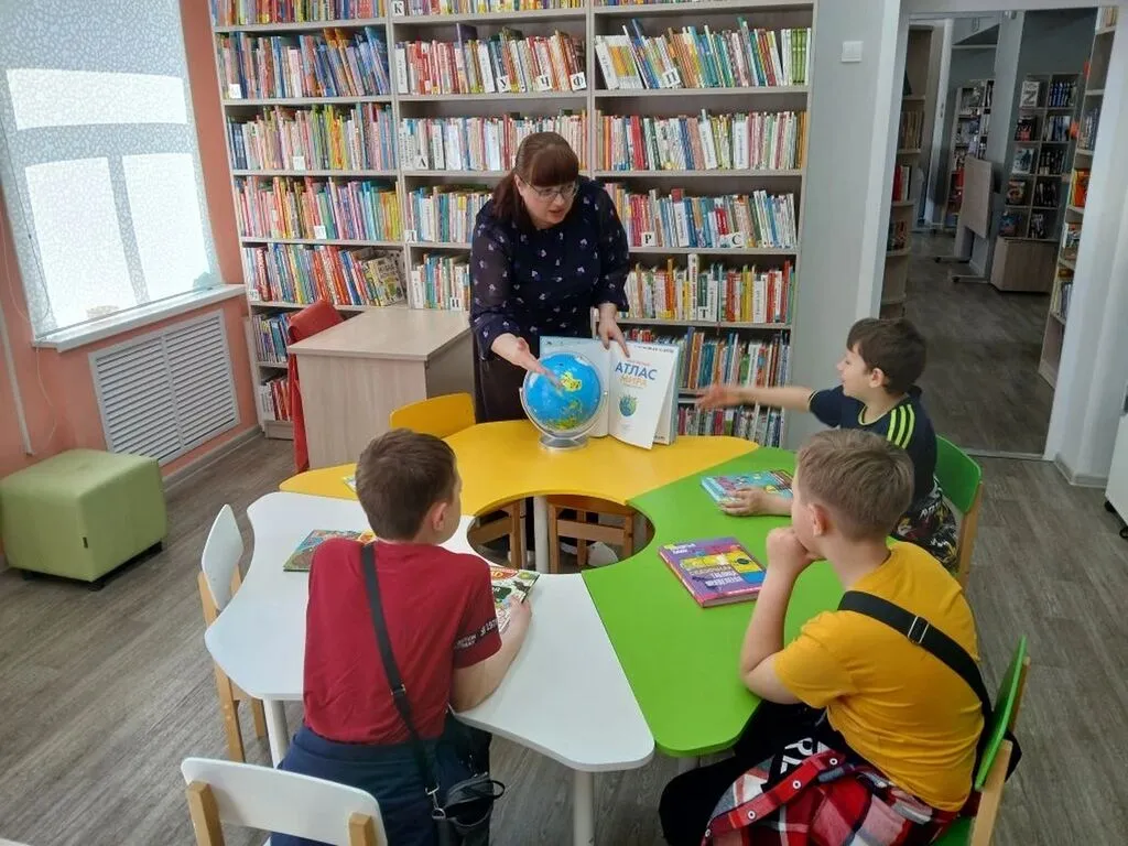 Юные читатели стали настоящими исследователями: сначала библиотекарь показала им сокровища библиотечного фонда — от захватывающих художественных книг до познавательных отраслевых изданий и красочных атласов. Но самое интересное началось, когда в дело вступил интерактивный глобус. С его помощью ребята отправились в увлекательное путешествие по странам: заглянули в Швецию и вспомнили весёлые истории про Карлсона от Астрид Линдгрен, переместились в Германию, где познакомились с волшебным миром сказок братьев Гримм, очутились во Франции и поговорили о Шарле Перро и его знаменитых сказках, добрались до Великобритании, чтобы вспомнить истории Редьярда Киплинга.