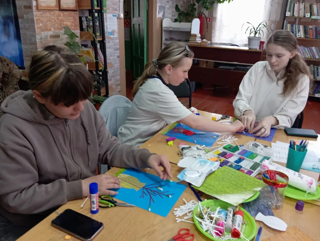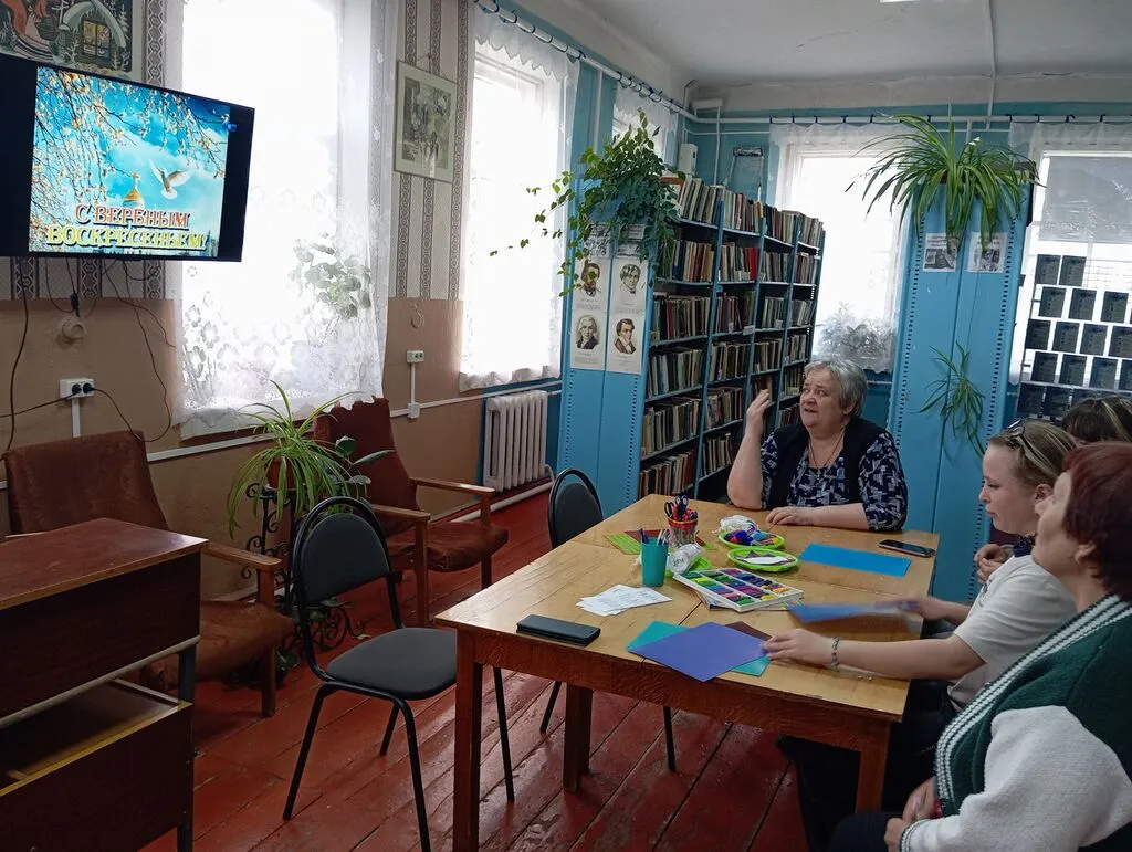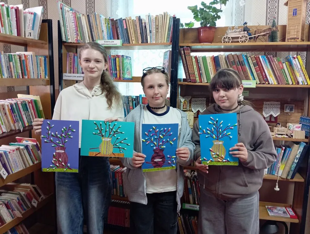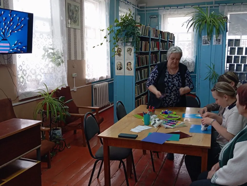 В Подгоренской сельской библиотеке, в рамках мастерской, прошел мастер-класс, где участники создавали смешанную аппликацию на тему «Веточки вербы в вазе».