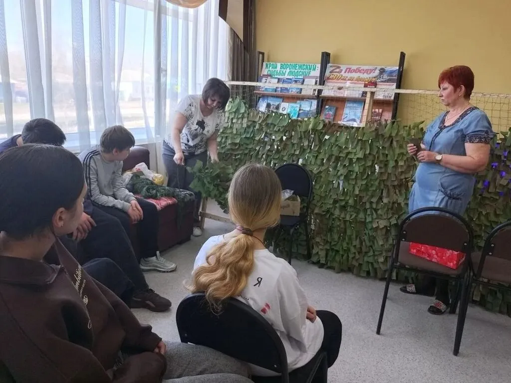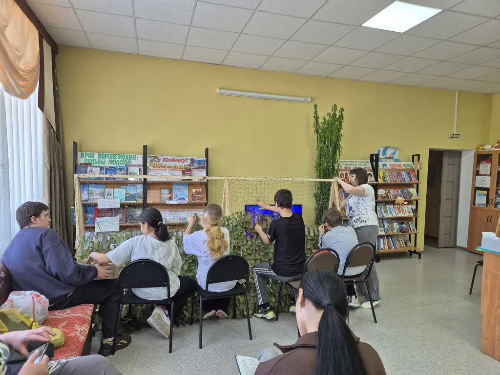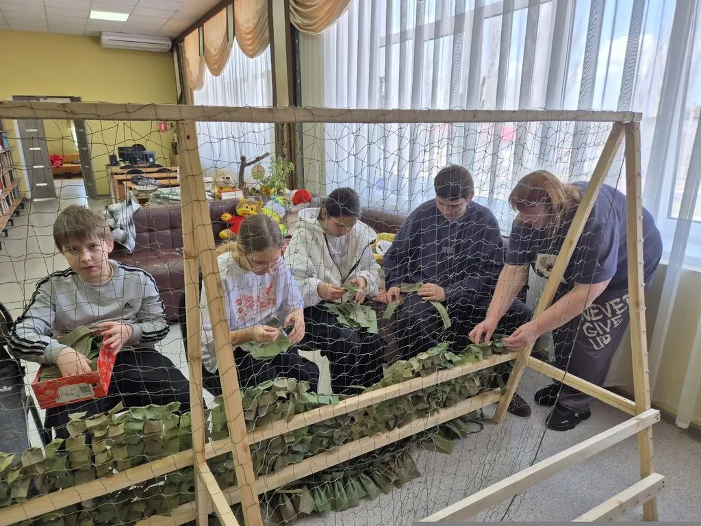 Библиотекарь подробно рассказала и показала ребятам, что необходимо, чтобы плести маскировочные сети. Она продемонстрировала готовые ленточки, основу для плетения и все необходимые материалы. Дети, под руководством сотрудников библиотеки, с энтузиазмом взялись за работу. Они старательно вплетали ленточки, внимательно следя за своими действиями и переживая за возможные ошибки. Каждый участник смог испытать свои силы и навыки.