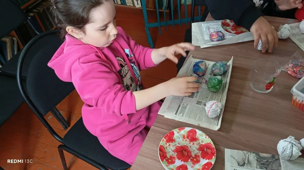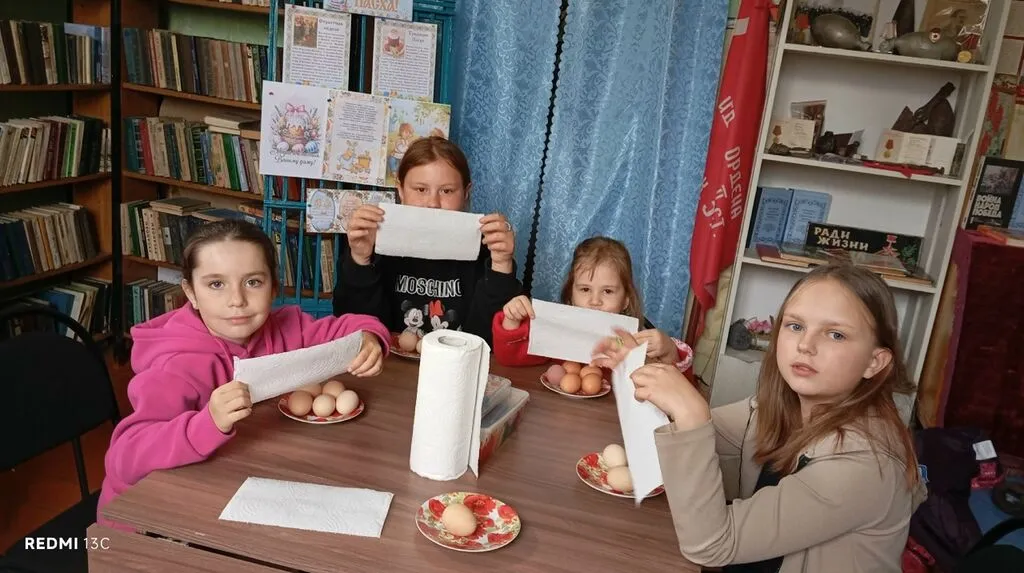 Библиотекарь начала встречу с рассказа о традициях Пасхи и истории праздника, что настроило всех присутствующих на творческий лад. Затем ребята приступили к самому интересному — раскрашиванию салфеток фломастерами. После этого они аккуратно обернули пасхальные яйца яркими салфетками и слегка смочили их водой. Когда бумага высохла, перед детьми предстали удивительные и неповторимые узоры на яйцах, которые вызвали настоящий восторг у всех участников.
